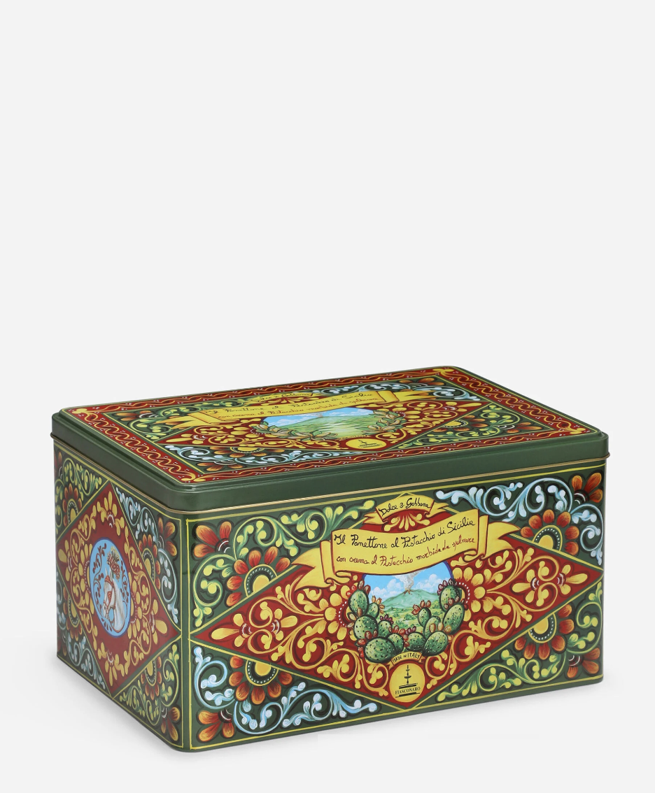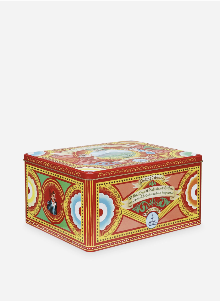 Le panettone est présenté dans une boîte luxueuse ornée de motifs inspirés de la tradition sicilienne, signés Dolce & Gabbana. Un écrin élégant, idéal pour offrir ce gâteau d’exception en toute occasion.